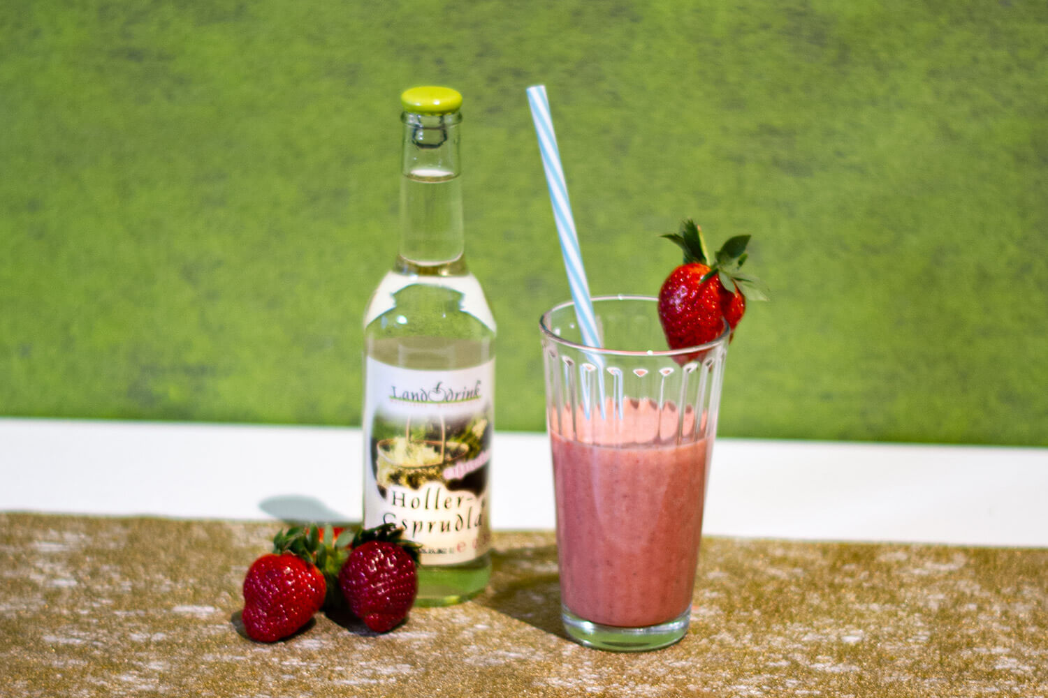 Erdbeer-Hollergsprudla-Cocktail Zutaten:4 Erdbeeren20cl Schlagobers200 ml Hollergsprudla Die Erdbeeren gemeinsam mit dem Schlagobers in ein hohes Gefäß geben und mit dem Pürierstab kurz mixen. Hollergsprudla hinzufügen und langsam umrühren.